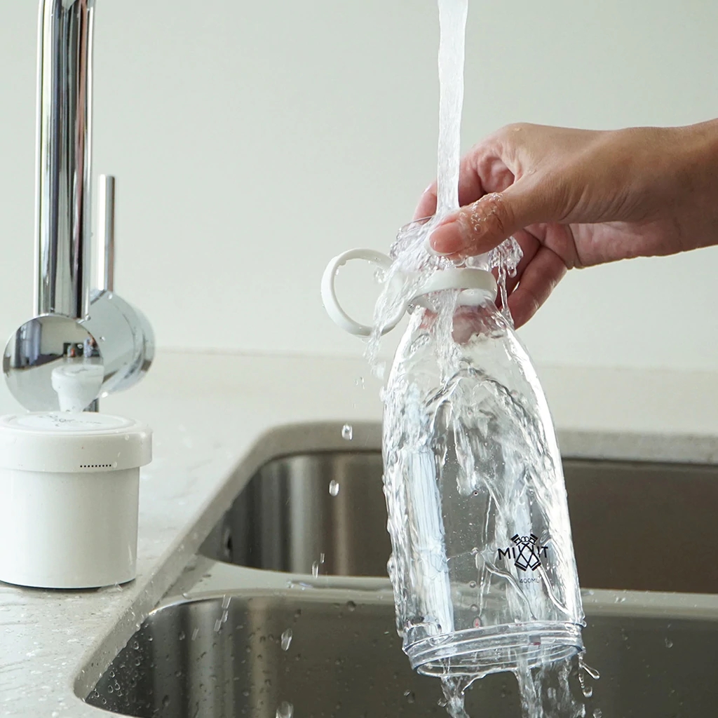 After you’ve enjoyed your yummy blended drink, the cleanup process is easy… Simply add some dishwashing liquid and warm water to the bottle, turn Mixxit on, and let the motor run, then rinse… the blender is clean and ready to go again.